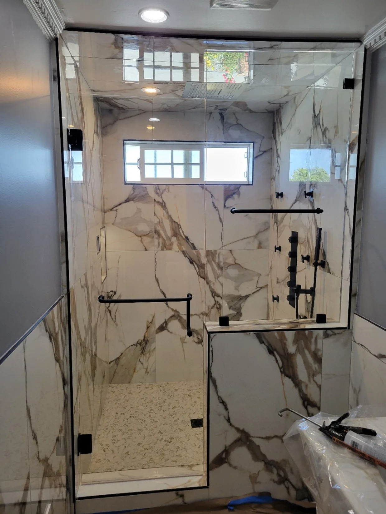 At Green’s Glass, we specialize in crafting custom shower doors tailored to complement your newly designed bathroom space. Whether you need a classic inline opening, a 90-degree return, or a unique, customized configuration, our expert team will design and install high-quality glass solutions to meet your specific needs.